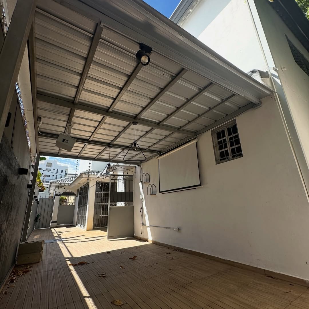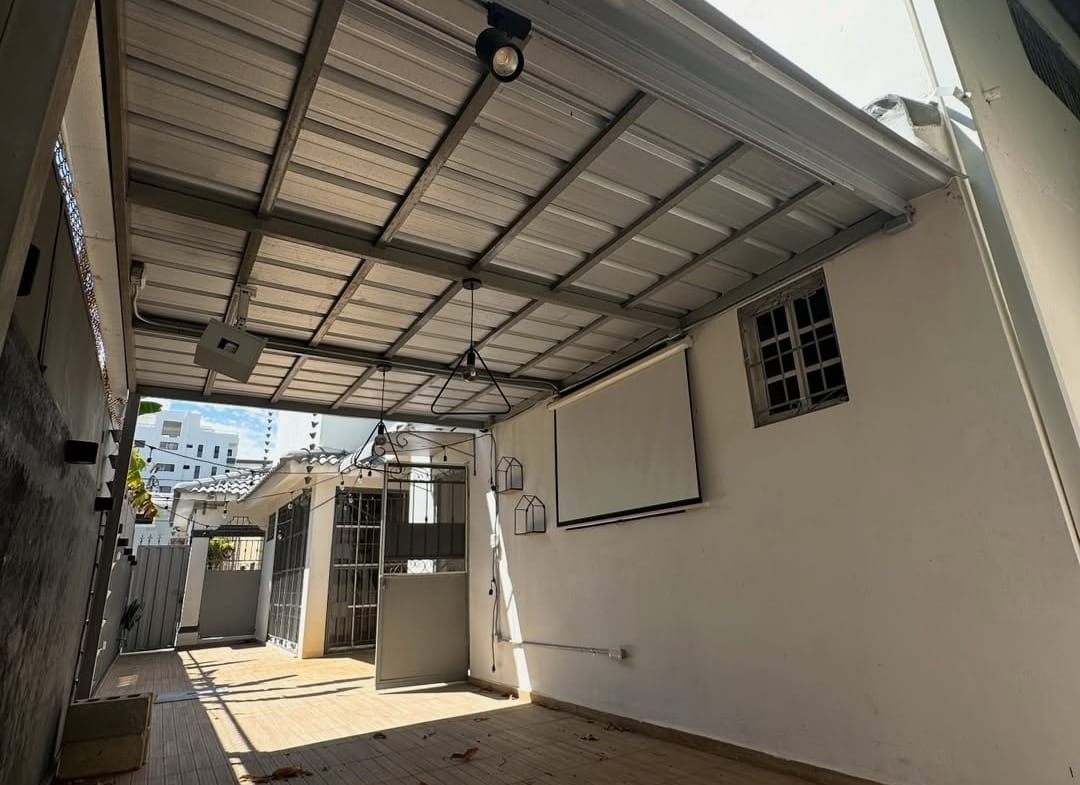 🎬 Patio con gazebo y proyector para películas al aire libre
